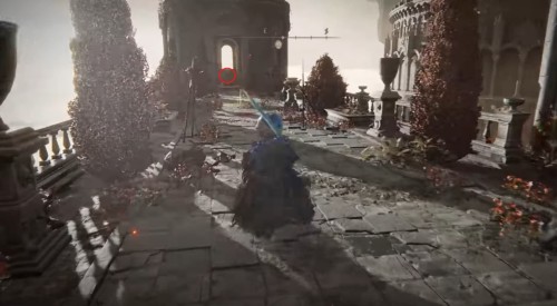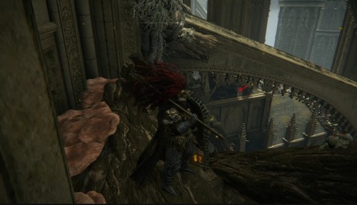 Вы сможете найти его в секретной области Святое Древо Микеллы. Доберитесь до локации Эльфаэль, опора Святого Древа. Там найдите место благодати под названием «Спускной канал». Выйдите через проход справа, а потом сверните влево и заберитесь на гигантские корни. Идите по ним вдоль здания. Вам нужно будет попасть на крышу храма, показанную на скриншоте ниже.