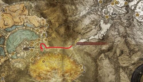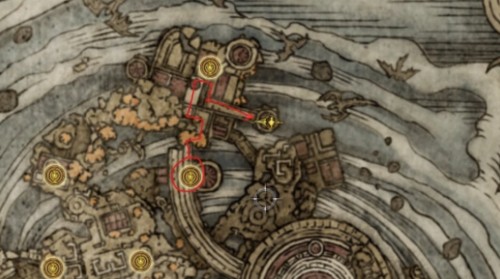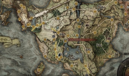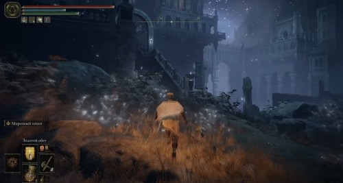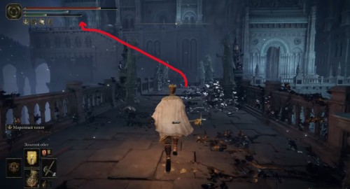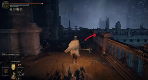 Сначала доберитесь до места благодати «Нокстелла, Вечный город». Сделать это можно в рамках квеста Ренни. Затем поднимитесь наверх по лесенке и продолжайте двигаться дальше, пока не пересечете мост. Сверните влево по еще одной лестнице и пройдите через помещение, в котором с потолка падают серебряные слезы.