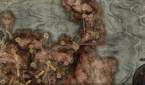 Его можно отыскать в столице пепла Лейнделл, однако добыть данный предмет удастся лишь после убийства босса Маликет Черный Клинок. Вам необходимо будет переместиться к соответствующему месту благодати, а потом бежать в сторону статуи дракона. Далее спуститесь к руинам с левой стороны.
