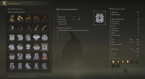 - Бонус: Намного повышает мудрость, колдовство, веру и интеллект, но при этом увеличивает получаемые повреждения.