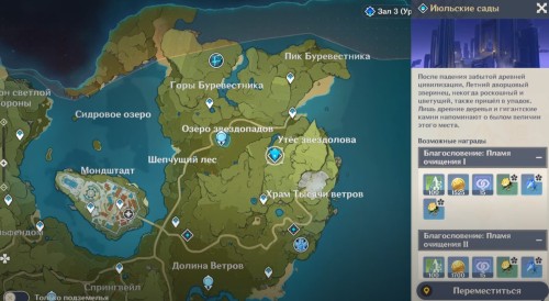 В Genshin Impact Июльские сады являются подземельем благословения, за прохождение которого можно получить такие 5-звездочные артефакты как Усмиряющий гром и Громогласный рев ярости. В этом гайде вы узнаете, как найти данный данж, каких персонажей лучше всего взять в группу для его зачистки, и какие именно награды вы сможете получить.