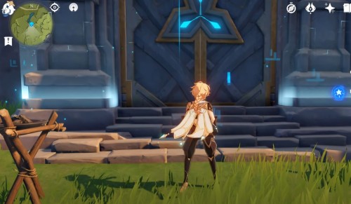 С этим проблем у вас точно не возникнет, так как вам необходимо будет просто отправиться в юго-западную часть Утеса звездолова (Мондштадт) в место, показанное на скриншотах ниже. Там вы увидите врата, высеченные прямо в скале. Взаимодействуйте с ними, чтобы активировать подземелье. Никаких головоломок решать не придется.