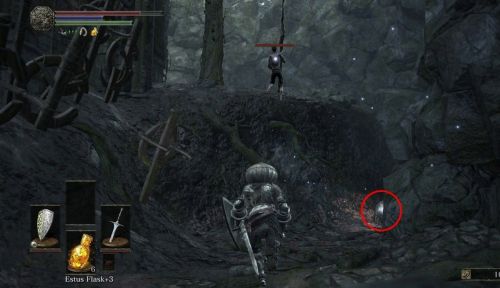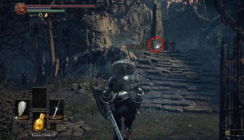 Как получить: После того как вы победите Танцовщицу Холодной Долины, находящейся в локации Высокая Стена Лотрика, вам стоит подняться по лестнице. Идите вверх, поверните налево и продвигайтесь вперед, пока не дойдете до лифта. Используйте его, но выпрыгните из него до того, как он достигнет дна. Выйдите на террасу и посмотрите направо. Там должно будет лежать тело с осколком фляги с Эстусом.