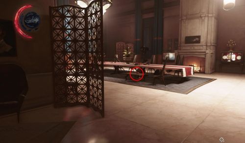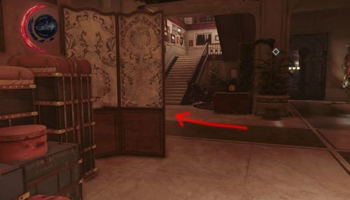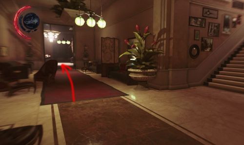 Первым делом убедитесь в том, что вы находитесь в прошлом, так как в будущем ключ отыскать не удастся. После входа в особняк, пройдите мимо груды сумок и чемоданов, а затем поверните налево. Идите вперед по коридору, пока не попадете в столовую с двумя большими статуями. Ключ можно найти на табурете, стоящем рядом с обеденным столом.