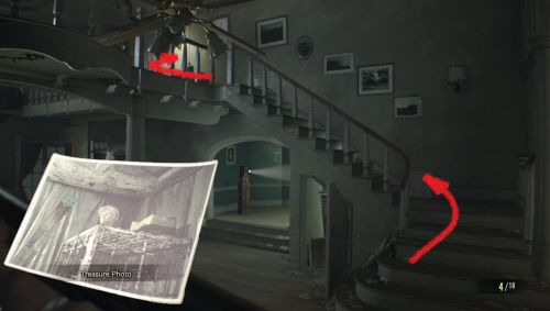 Сначала вам предстоит отыскать ключ Змеи, а после нужно будет отправиться в основной зал главного дома и подняться на верхний этаж. Используя ключик, войдите в спальню хозяев. Из этой комнаты вы сможете пробраться в кладовую (склад). Нужный снимок лежит на красном стульчике.