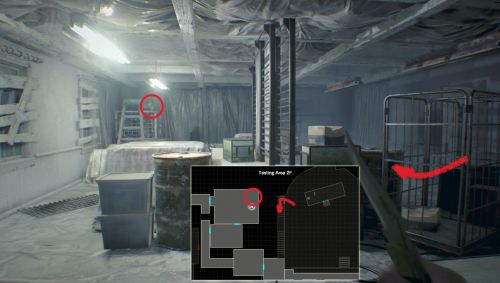 Далее необходимо направиться в убежище Лукаса (тестовая зона), которое расположено сбоку от автофургона. Чтобы пробраться в это здание вам понадобятся две ключ-карты синего и красного цвета. Попав внутрь, пройдите в 4-е помещение, где находится клетка и бюст со шляпой. Следует взаимодействовать со статуэткой, чтобы получить сокровище – ремонтный комплект.