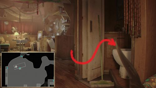 Достав фотографию, выйдите во двор главного дома и войдите в трейлер. В нем вам нужно пойти налево и отыскать туалет. Здесь и расположено сокровище, а именно: боеприпасы для Магнума. Кстати, сам револьвер расположен неподалеку, в птичьей клетке, откуда его можно достать за 9 антикварных монет.