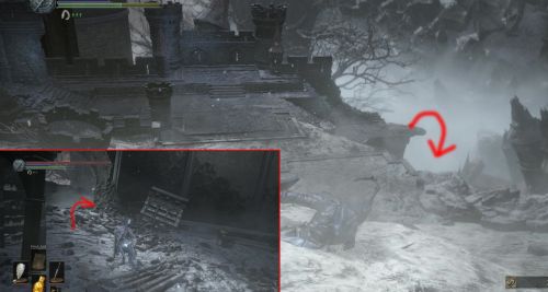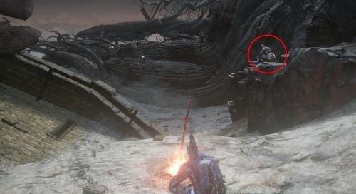 Третья встреча с этим персонажем случится на балконе неподалеку от костра «Внутренняя стена города». Пройдите через всю комнату от ворот до лифта.