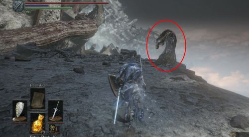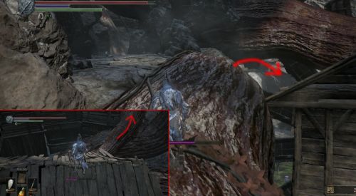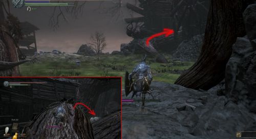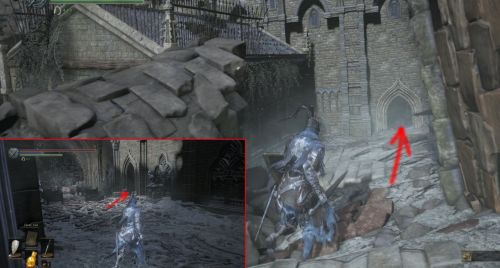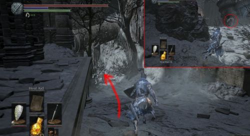 Направляетесь вдоль правой стены предыдущего сооружения и пройдите в небольшой зал. Кстати, именно через это помещение вы сможете также добраться до рыцаря Лаппа. С правой стороны зала можно найти маленький проход. Выйдите из него и поверните налево. Теперь нужно пролезть под башенкой, чтобы попасть на открытую местность. Осмотритесь хорошенько, чтобы отыскать пилигрима-хоста.