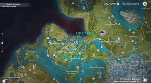 Арена с Океанидом располагается посреди озера между деревней Цинцэ и Каменными вратами. Чтобы попасть на арену, воспользуйтесь ближайшим к ней телепортом, указанным на карте ниже.