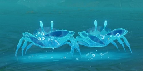 - Мимики-крабы – существа, перемещающиеся перпендикулярно вокруг игрока, швыряют своими клешнями пузыри, которые наносят небольшой, но постоянный гидро-урон. Время от времени они останавливаются, чтобы передохнуть, а потом возобновляют движение.