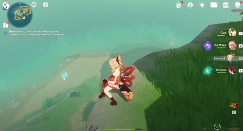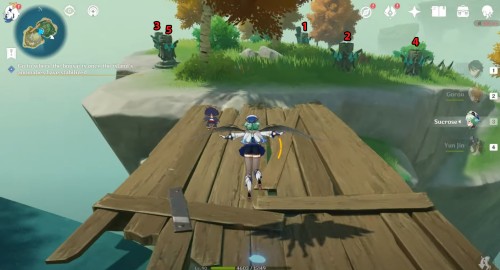 Появившись возле телепорта, бегите на юго-запад. Там вы обнаружите 5 Анемо тотемов, которые нужно активировать в определенной последовательности. Нужный порядок показан на втором скриншоте ниже. Если вы хотите узнать его самостоятельно, то нужно посмотреть, как двигается Электро фея, о которой мы рассказали ранее.