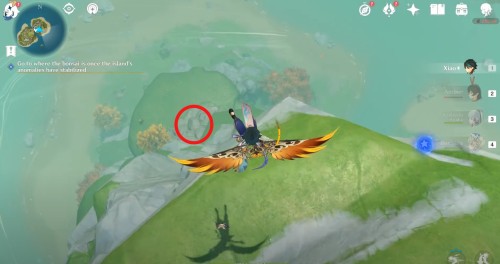 Выберите следующие камни на бонсае: Непреклонный камень (левый) и Непреклонный камень (правый). Затем переместитесь на остров и бегите в его юго-западную часть. Там вы обнаружите птицу. Подойдите к ней и начните следовать за духом. На скриншотах ниже показаны все места, где он останавливается.