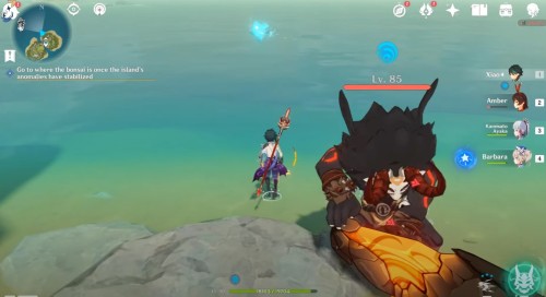 Появившись возле телепорта, бегите к краю обрыва на юге и спрыгните вниз. На берегу вы обнаружите 4 факела, которые нужно зажечь. Подойдет любой Пиро персонаж, включая бесплатную Эмбер. В результате вы разблокируете богатый сундук.