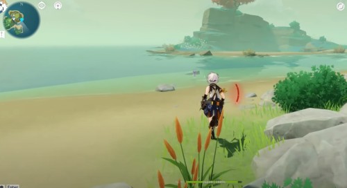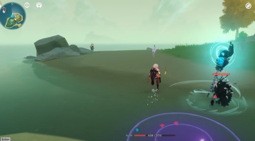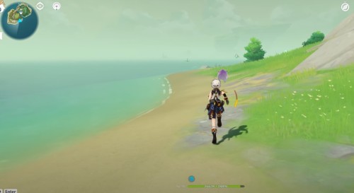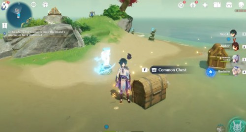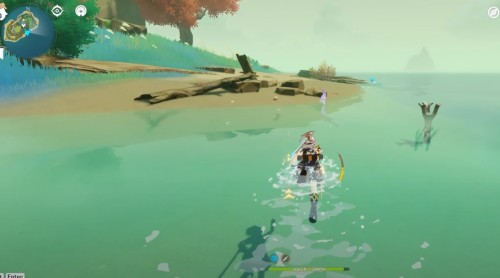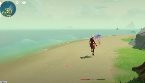 Вскоре вы попадете на пляж. Двигайтесь вдоль него, расправляясь со всеми врагами по пути или не обращая на противников внимания. Эта фея тоже будет двигаться к островку с бонсаем. Просто телепортируйтесь на него, дожидаясь прибытия духа, а потом сопроводите его к домику и заберите обычный сундук.