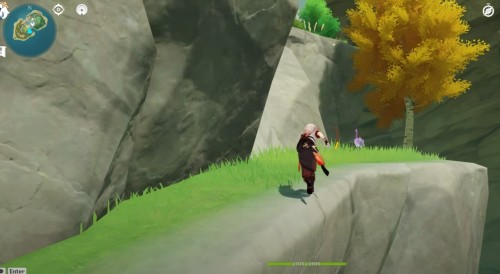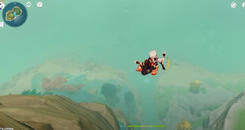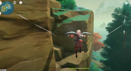 Появившись возле телепорта, бегите к обрыву на востоке и спрыгните вниз. Выполните удар в полете, чтобы сломать кучу камней внизу и освободить Анемо фею. Начните следовать за духом, спускаясь вниз.