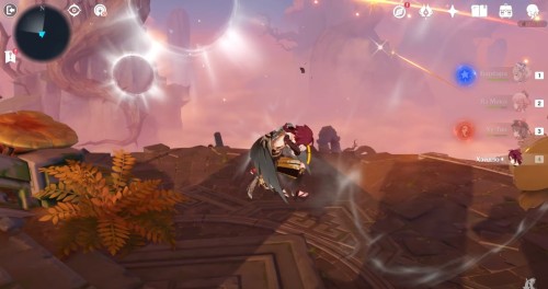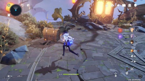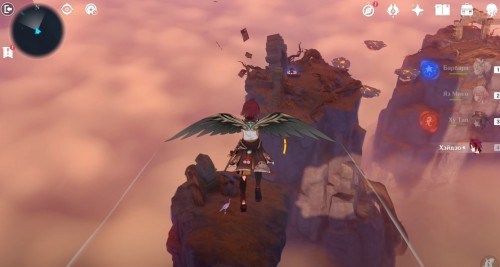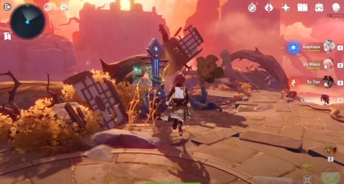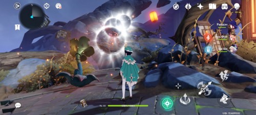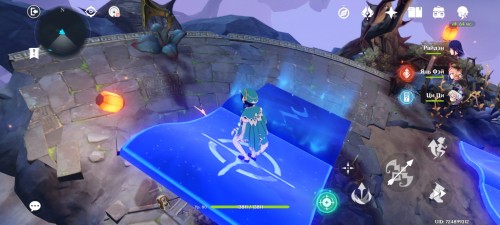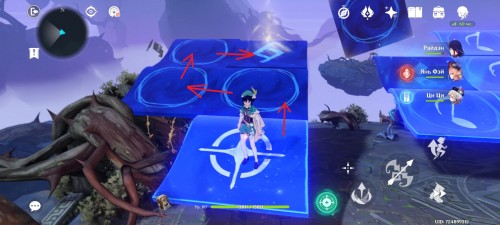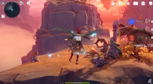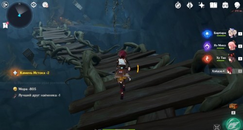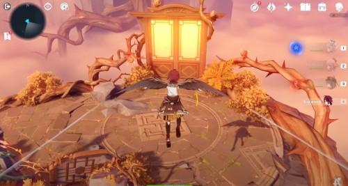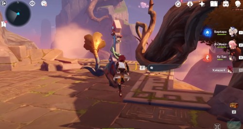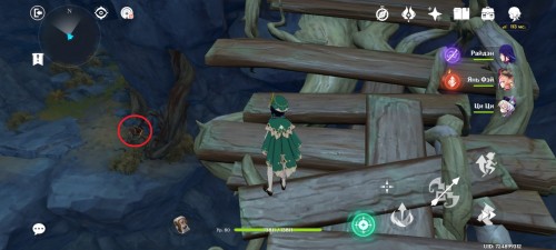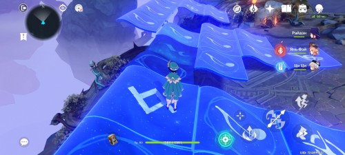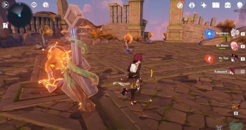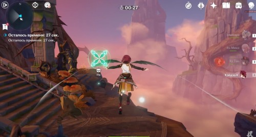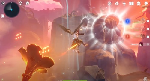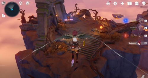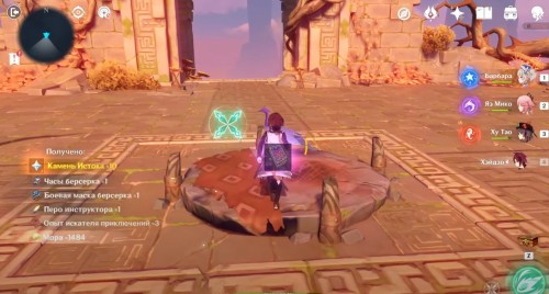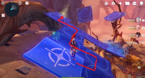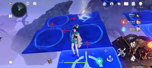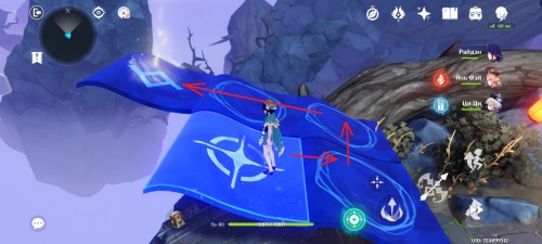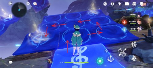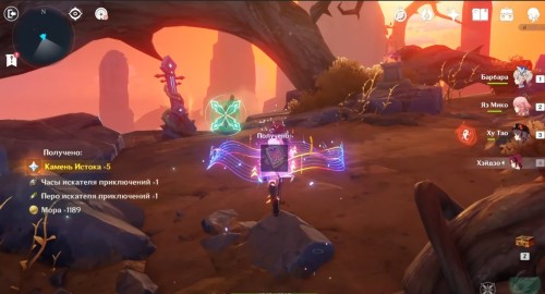 Далее снова сыграйте на арфе, чтобы создать новые ветряные кольца. Пролетите через них, дабы попасть на большую скалу с руинами. Вы попадете на арену с хиличурлами и лавачурлами. Разберитесь со всеми противниками для снятия барьера с драгоценного сундука впереди.