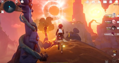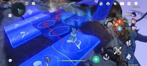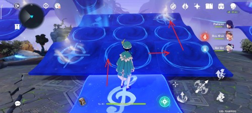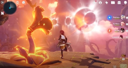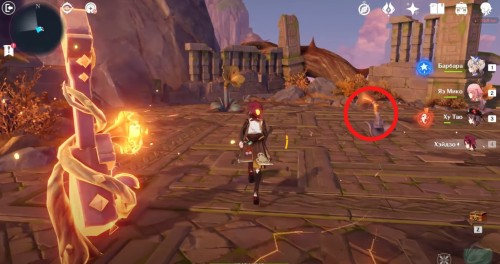 На следующем острове вы встретите 4 Пиро монумента и Электро журавля. Подойдите к птице, и она пролетит над монументами, указывая, в какой последовательности их надо зажигать. Для удобства мы показали нужный порядок на скриншоте ниже.