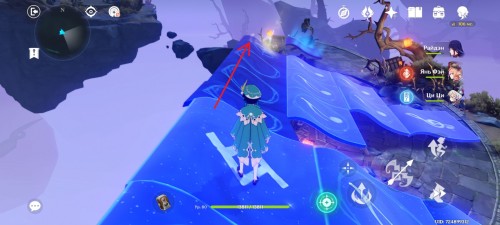 Вы окажитесь в локации с ледяным сердцем. Выйдите из этой пещеры и сразу же сверните влево. Откройте дверь и войдите в другое пространство. Выстрелите из арфы, чтобы создать воздушный поток. С помощью него переберитесь на другой остров.