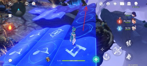 После перехода на следующий участок со ступеньками, пройдите к светящейся плите, чтобы открыть второй маршрут. На скриншотах ниже показано, куда нужно идти. В результате вы активируете арфу. Можете сразу же сыграть на ней, чтобы разблокировать обычный сундук.