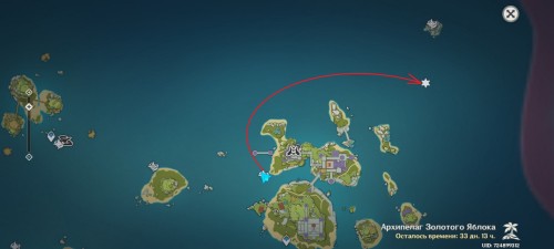 Начнем маршрут с самой северной медузы. Находится она на северо-востоке от Парного острова. Добраться до нее можно на волноходе. Ориентироваться можете на скалу с покосившимся домом.