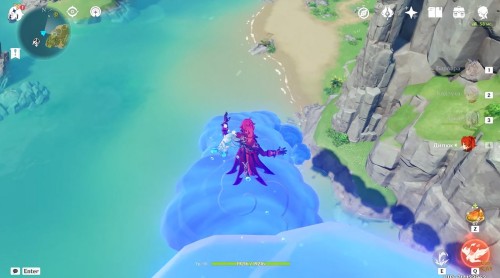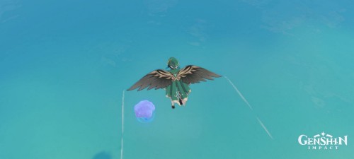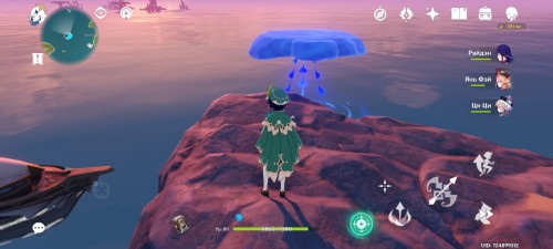 До этой медузы удобнее всего будет добраться от якорной стоянки на севере от Острова Пудинга. Сама платформа находится на северо-востоке, рядом с плотом хиличурлов.