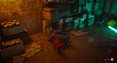 Вы сможете открыть дверь в другое помещение. Войдите в него и сбейте коробку, стоящую на верхней полке в левой части помещения. Из нее выпадет неактивный дрон. Схватите его и возвратитесь в предыдущую комнату.