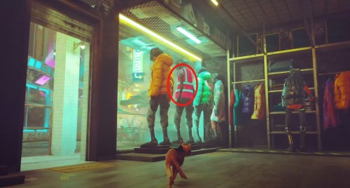 После разговора с Блэйзером, выйдите из переулка, и войдите в магазин по продаже одежды, находящийся с левой стороны. Войдите в него, и вы увидите нужный вам жилет на манекене, стоящем возле витрины, однако украсть его не выйдет, так как вас остановит местный сотрудник. В помещении для примерки при этом имеется бумбокс, куда можно установить музыкальную кассету.