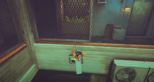 Возвратитесь в жилой район, где вы ранее беседовали с Клементиной. На нижнем уровне отыщите робота в белом по имени Саймон. Пообщайтесь с ним. Он скажет, что даст вам кассету, если вы сломаете установленные здесь камеры.