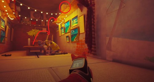 Третья установлена на стене слева от доски, на которую вы можете залезть, чтобы затем прыгнуть на видеокамеру. Разобравшись с устройствами, снова пообщайтесь с Саймоном, дабы забрать у него кассету.