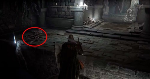 Умертвив противника, проследуйте дальше в проход. Он выведет вас в знакомую комнату с колонной по середине. Соберите трофеи: