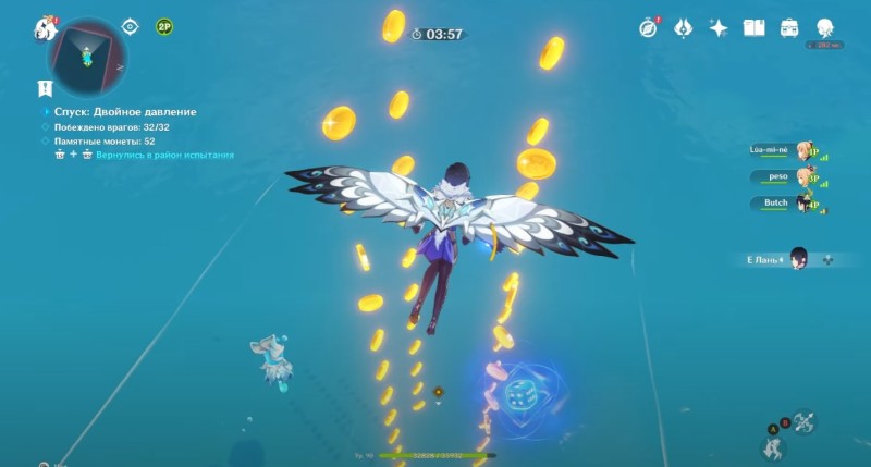 При перемещении по морю вы обнаружите множество монеток, которые тоже следует собирать. Они обычно распределены по четырем маршрутам, поэтому следует заранее выбрать, кто как поплывет (если у вас нет связи с другими игроками, то просто наблюдайте за их действиями и выбирайте нетронутые маршруты). Вам нужно будет собрать 100 монеток для получения 180 очков.