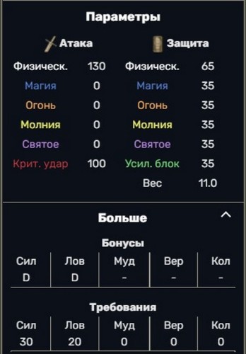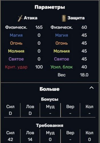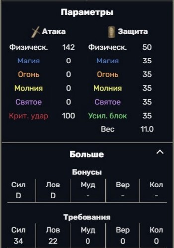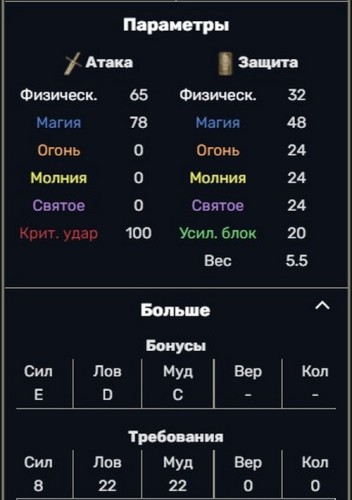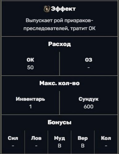 Звезды Бастарда (цеп) |  | Туманность (25 ОК) – персонаж выполняет размашистый удар, после которого остается темное облако, взрывающееся через некоторое время и наносящее большой урон. | 10000 рун |