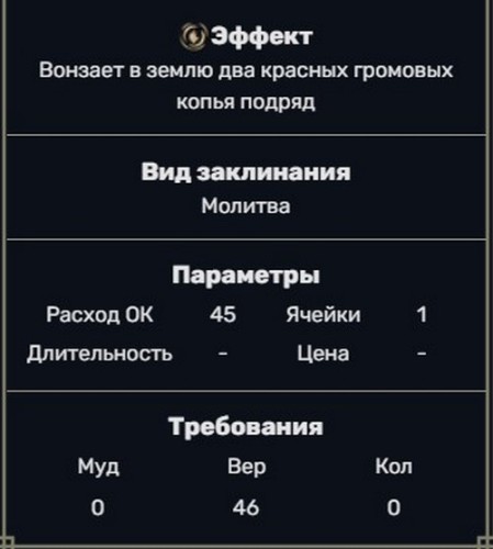 Смертоносная молния |  | Подробнее можно узнать в гайде по молитвам. | 0 рун |