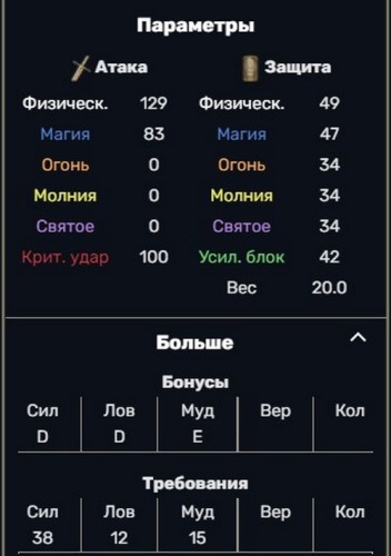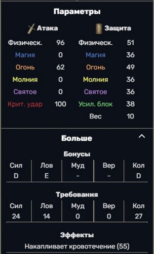 Тем, кто использует билд на Веру лучше взять молитву. Остальные могут для интереса опробовать кнут. Однако данное оружие трудно отнести к лучшим экземплярам.