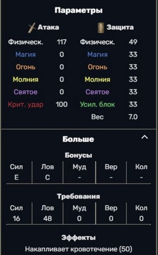 Меч является весьма мощным оружием, которое неплохо показывает себя в PvP-битвах, давая возможность гнаться за оппонентами. У него также весьма высокое значение критического удара. Поэтому мы настоятельно советуем вам забрать именно изогнутый двуручник.