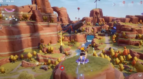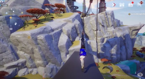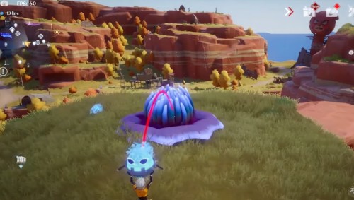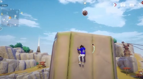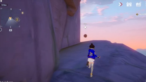 Доберитесь до места, представленного на картинках ниже. Здесь рядом с горой вы обнаружите фиолетовую сферу. Поднимите ее и начните идти вверх по склону. Наверху на скале можно увидеть коричневый цветок, в который следует бросить шар.