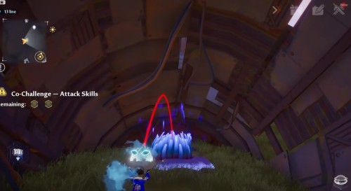 Отправляйтесь в отмеченную точку. Здесь вы обнаружите цветок, в который необходимо кинуть ледяного робота, находящегося неподалеку. Поглотитель может оказаться неактивным – взаимодействуйте с ним, чтобы узнать через сколько времени он вырастет.