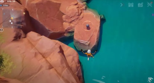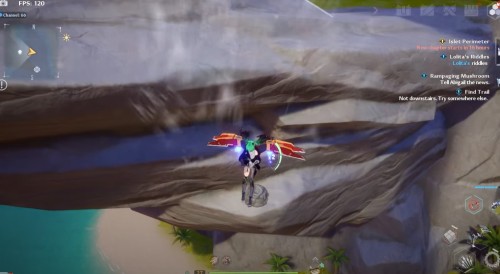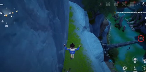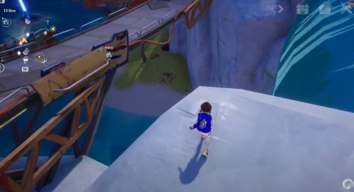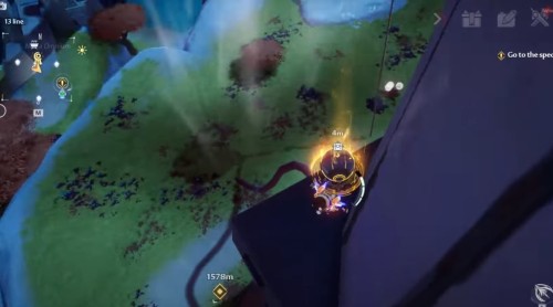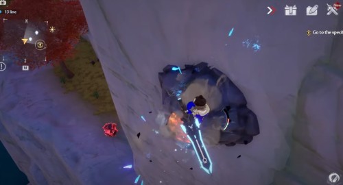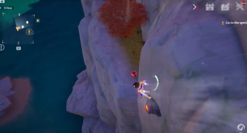 Заберитесь на утес в указанных координатах, а потом спрыгните с края обрыва, показанного на скриншотах. Развернитесь в полете, и вы увидите лавовую яму. Ударьте по ней любой ледяной атакой, чтобы получить крутку. Если она неактивна, то вам нужно либо подождать следующего дня, либо повысить свой уровень.