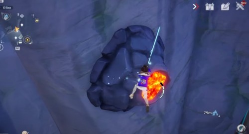 Доберитесь до указанной локации. Тут на скале вы увидите лавовую яму, которую необходимо потушить с помощью ледяной атаки. Если она неактивна, то вам нужно либо подождать следующего дня, либо повысить свой уровень.