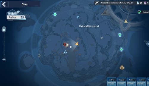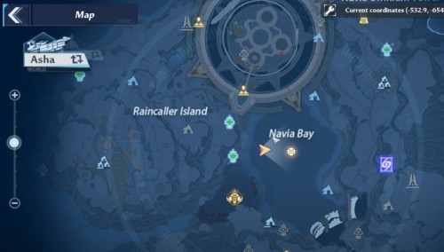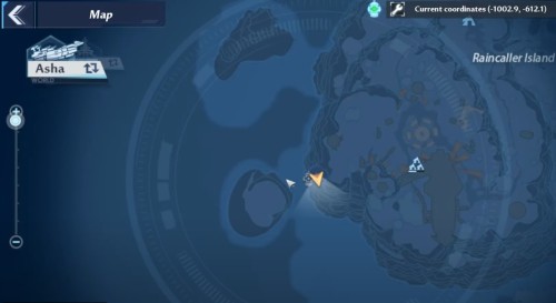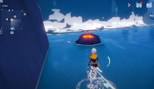 Отправляйтесь на западное побережье и найдите островок в месте, показанном на скриншоте ниже. Здесь будет очередной вулкан, который следует потушить ледяной атакой. Затем заберите ядро.