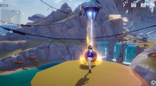 Вы увидите пятый луч, расположенный на уступе внизу. Спрыгните к нему и взаимодействуйте с ним. Еще ниже будет шестое устройство, которое тоже нужно активировать. В итоге энергия передастся в червоточину и из нее вывалится крутка.