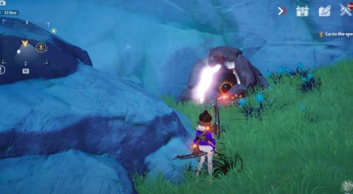 От предыдущей крутки продолжайте бежать на юго-запад в указанную локацию. Там отыщите груду камней со смолой и разрушьте ее любой огненной атакой. Внутри вы обнаружите необходимый вам предмет.