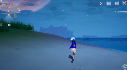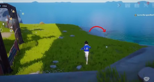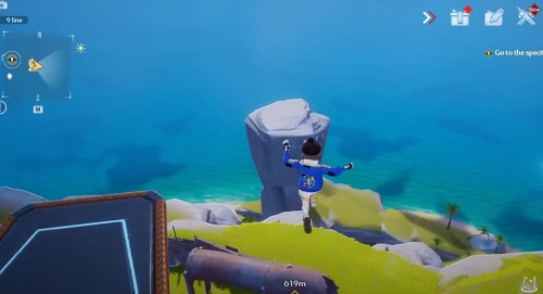 От прошлого ядра бегите на юг вдоль берега. Добравшись до указанного места, вы увидите нужный предмет над каменным выступом.