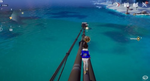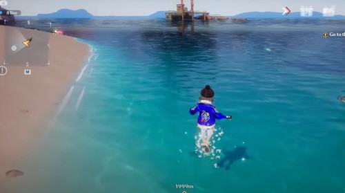 От 84-го ядра начните двигаться на северо-восток к побережью. Спрыгните с обрыва в показанном на скриншоте ниже месте. На пляже в воде вы увидите капсулу снабжения, в которой может оказаться золотая крутка.