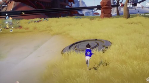 Пройдите еще дальше на восток в центр локации Кольцо эха. Можете воспользоваться транспортным средством, чтобы быстрее доехать до нужного места. Здесь вам нужно будет решить головоломку с желтыми музыкальными плитами. Прыгните на ту, которая показана на втором скриншоте ниже.