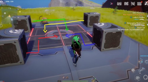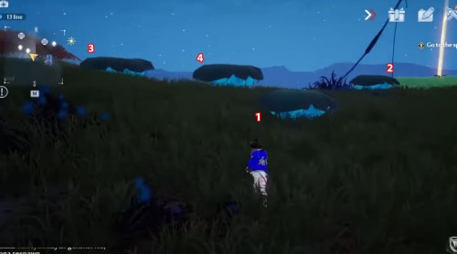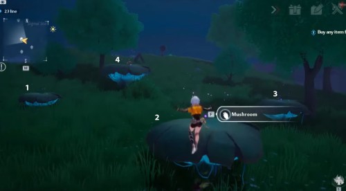 Снова переместитесь к телепорту в руинах, но теперь двигайтесь прямо на север. На лугу вы увидите четыре гриба. Вам нужно будет попрыгать по их шапкам в определенной последовательности, показанной на втором скриншоте ниже. После этого появится ядро.