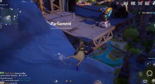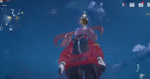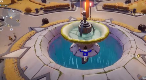 Возвратитесь на парящий остров Cetus и бегите к фонтану в его центре. Спрыгните в него и начните медленно спускаться вниз, чтобы подобрать очередную крутку.