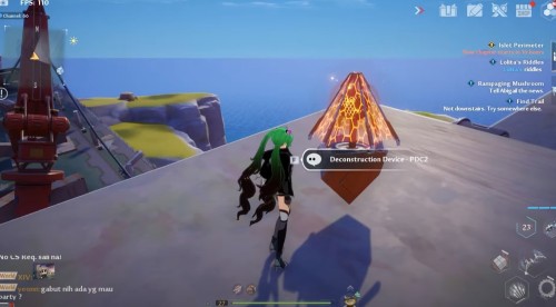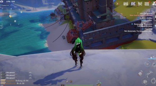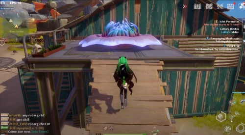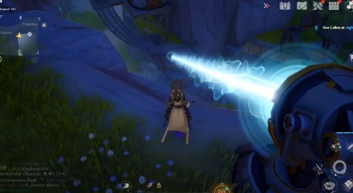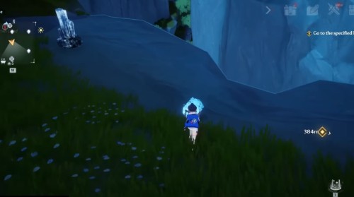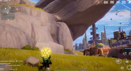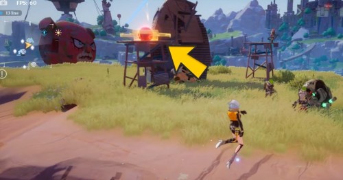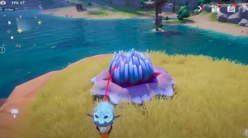 Переместитесь к вратам телепортации в Бесплодном городе, а затем направляйтесь на островок на северо-востоке. Заберитесь на указанную скалу с большим голубым цветком (Поглотитель) на вершине. Затем подберите ледяного робота рядом с ним и бросьте прямо в цветок. Далее заберите крутку.