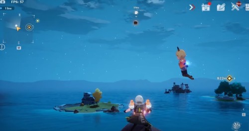 Переместитесь на летающий островок и спрыгните вниз с края площадки, показанного на скриншоте ниже. Развернитесь и летите к нижнему уровню платформы. На нем вы и найдете золотую крутку.